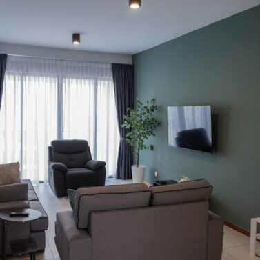 Our large family unit, immersed in a harmonious blend of green and grey tones, invites you to bask in a feeling of abundance. The combination of green and grey, with their associations of nature and subtlety, fosters an environment that exudes tranquility, peace, rest, and security.